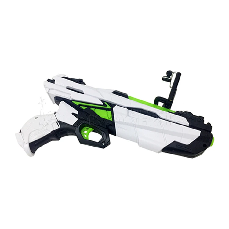 AR Game Gun изготовлен из материала ABS, легковесный, но прочный, закреплен винтами с гладкой поверхностью и тонким исполнением. Кроме крепления, на гаджете ничего не отстегивается и не снимается. Крепление подходит для смартфонов с диагональю до 5.5 дюймов. В рукоятке устанавливаются две батарейки типа 2*AАА. (в комплект не входят)