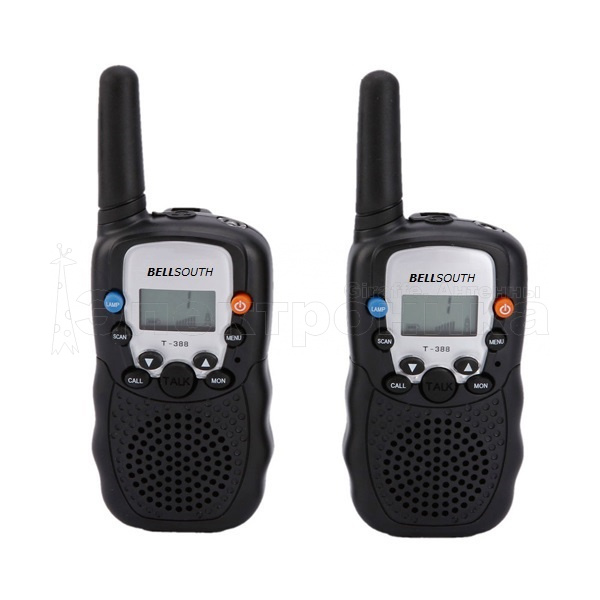 Рация T-388 с простым и понятным меню. Работает в диапазоне 462-467 MHz, выделенного для удовлетворения бытовых нужд в радиосвязи широких масс населения. Позволяет общаться на расстоянии до 3 км (на открытом пространстве, без преград).